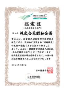 昭和企画は、従業員が健康であることを企業の力と考え、これからも働きやすく、安心して力を発揮できる職場づくりを進めてまいります。